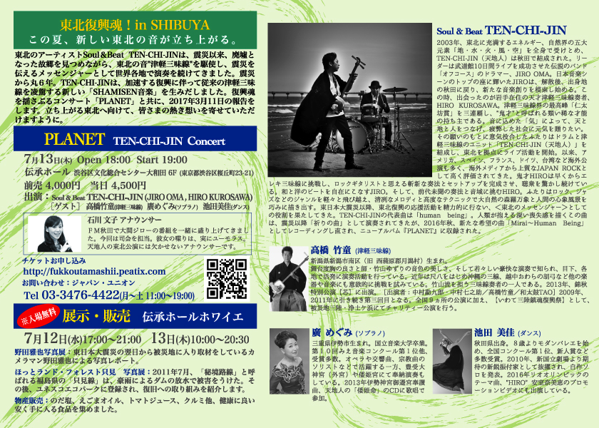 3/14(土)TEN-CHI-JIN ステージで共演